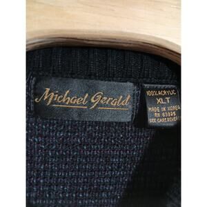 Details: Get cozy with this vintage men's Michael Gerald sweater! Crafted from 100% acrylic, it's all about that warm and comfy feel. Sporting some serious dad vibes, this sweater is the epitome of laid-back cool. And the best part? No holes! So, you can rock that retro look without any unwanted ventilation. Wrap yourself in style and comfort with this classic piece!
