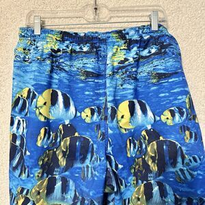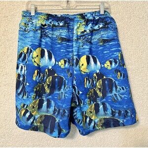 Vintage Men's Nautica Aquarium Pattern Navy Swim Trunk Shorts Size Large
