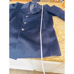 Vintage Mens Navy Virgin Wool Peacoat Overcoat Notch Lapel 3 Button Academic