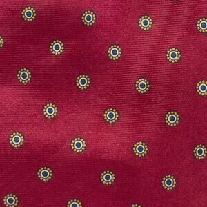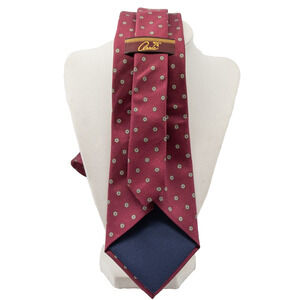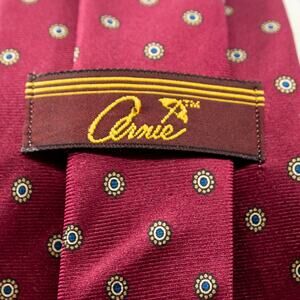 Elevate your style with this vintage red neck tie from ARNIE. Made with 100% silk, this classic length tie features a geometric pattern and a pointed style. Its classic width and Italian origin make it a versatile addition to any wardrobe. Perfect for any occasion, this tie is a must-have for any fashion-forward man. The one size fits all design ensures a comfortable and stylish fit. Add a touch of sophistication to your outfit with this exquisite piece. This tie is gently used in good condition. Length 58", Width 3.25"