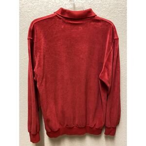 Vintage Men's Norm Thompson Velour Long Sleeve Polo Sweatshirt Size M Red