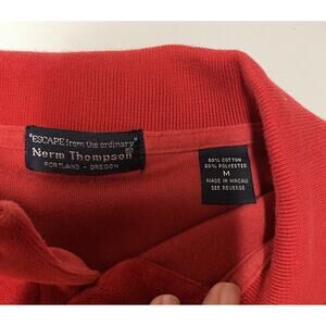 This vintage men's Norm Thompson velour long sleeve polo sweatshirt in size M is a classic piece with a solid red color and collared neckline. Made from a comfortable blend of 80% cotton and 20% polyester, this pullover shirt features a ribbed hem and cuffs for a stylish fit. Perfect for the winter and fall seasons, this shirt is great for casual activities such as walking, golf, typing, driving, and everyday wear. The 70s and 80s theme adds a retro touch to this comfortable and breathable polo sweatshirt.