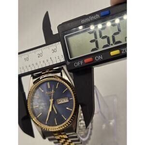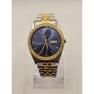Vintage Men's PULSAR Two-Tone Silver Dial Watch Day/Date V533-8850