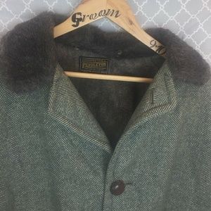 Item: Vintage Mens Pendelton Herringbone 100% WOOL Jacket Coat Fur Collar, Lined . Item is 100% authentic