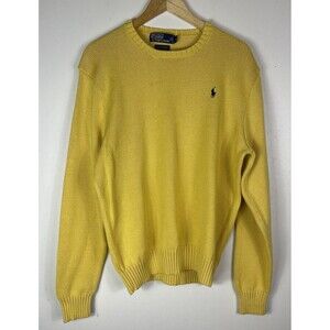 Vintage Mens Polo By Ralph Pima Cotton Knit Crewneck Sweater Size XL Yellow Y2K