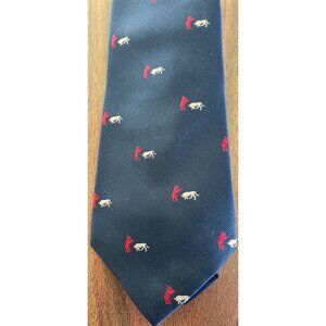 Vintage Men’s ROOSTER Tie Navy With Red Bear & Beige Dog Polyester And Silk Wove
