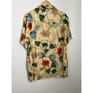 Vintage Mens Ron Chereskin Size L Hawaiian Shirt Tropical Yellow Wooden Buttons. Very nice men’s Hawaiian shirt that feels of good quality. Size tag is missing but based on measurements I’d estimate this to be about a large. Please refer to picture of measurements to ensure fit. No obvious flaws, holes or stains except for a mark on the brand tag on interior. I appreciate your business and strive for a five star rating. Please feel free to message me with questions.