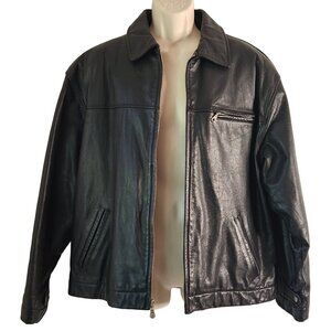 Vintage Mens Roundtree & Yorke Black Leather Jacket Large Genuine Classic Coat