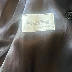 This vintage San Remo (Italian) double breasted dress coat is in excellent condition. Rarely worn as owner moved to a warmer climate. Coat is cashmere and wool. Size 38 Regular. Navy color.