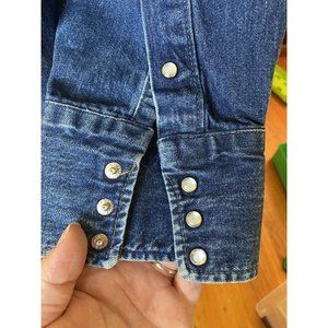 Vintage Men’s Sanforized Pearl Snap Denim Shirt Be Wise Be Satisfied BB Brand.Made in the USA Distressed. Spotted with bleach.Pearl snapsSanforized denimMeasurements in photosIt does not have a size tag go by Measurments for fitment.