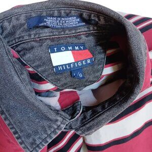 Vintage Men's Shirt Large 1990's Tommy Hilfiger Brush Popper Striped All Cotton