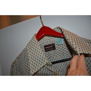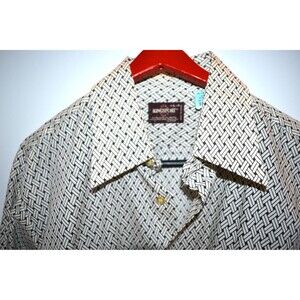 Vintage shirt in excellent condition. The amazing Kingsport shirt has left chest pocket. The shirt is sized large. What a fab find. Perfect for retro, party, disco, mod, abstract and other trends. Extremely well preserved. Lay down pointy collar. Black and white basket weave. New with tag in collar.