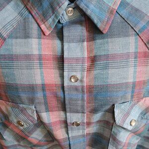 Vintage 80's Dee Cee Cowboy Western shirt in pastel plaid with snap buttons. Perfect for a retro, casual look. Comfortable and stylish, ideal for any occasion.