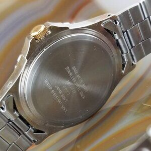 Vintage Mens Silver & Gold TN ARMITRON Chronograph Watch Military Time