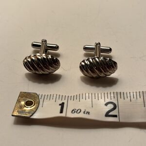 Vintage Men’s Silver Tone Sculpted Cable Oval Cufflinks