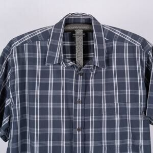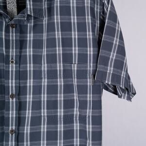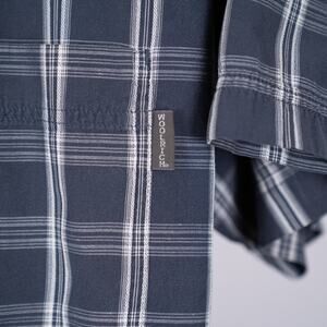Vintage Men's Size 2XL Woolrich Short Sleeve Button Up Shirt Blue & White Plaid