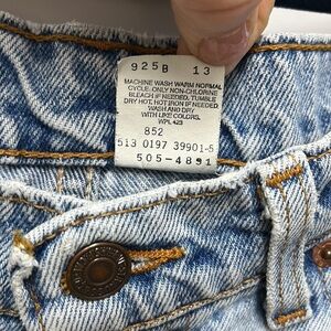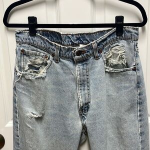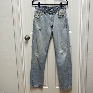 Levi’s 505 Regular Fit Straight Leg W 34 L 32, lots of distressing from age, awesome vintage condition, see photos for wear