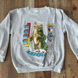 Vintage Mens Size XL Arkansas Bass Fishing Graphic Crewneck Sweatshirt in Gray