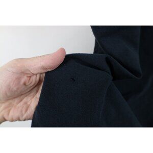 Holes front. Collar, arms discolored. Graphics, color faded. Dark spots, pilling