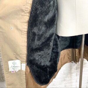 Vintage men’s dark khaki all weather coat / overcoat with black faux fur lining by Sterlingwear of Boston. Size 42.