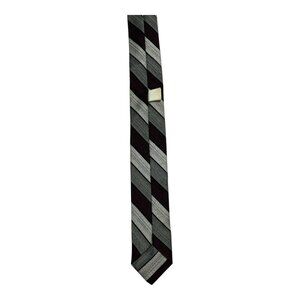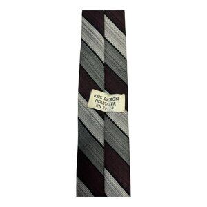 Classic vintage men’s tie featuring a sharp diagonal stripe pattern in shades of gray and burgundy. Made of 100% Dacron polyester, this mid-century design adds a refined touch to any outfit. Ideal for collectors, retro fashion lovers, or formal wear with timeless style.