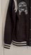 Classic black letterman/Varsity jacket with white stripes. Features iconic Stussy logos on the front.
