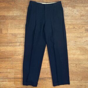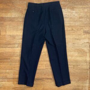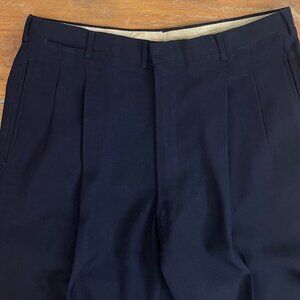 Pants are double pleated, have clasp waist, pockets in front and back, belt loops measure 1.75” (4.5cm).