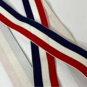 Vintage Mens Suspenders Clip On Adjustable Red White And Blue 1 1/2" Wide. USA Patriotic theme. Approximate measurements from me end of the fabric to the other is 43.5” long.