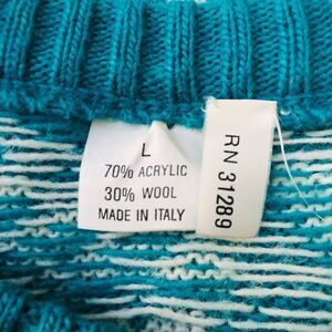 Vintage Men's Sweater Size Large Green White Wool Blend Made in Italy. In pre-owned but good condition. Approximate measurements: pit to pit is 23 inches and length is 27 inches and sleeve inseam is 20 inches.