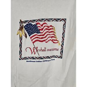 Vintage Mens Sz L Single Stitch Short Sleeve T Shirt White American Flag 1990s