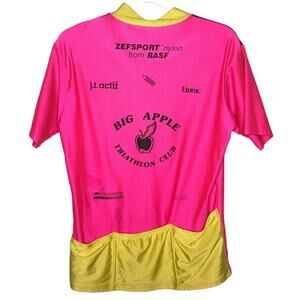 Vintage Mens Sz XL Cycling Jersey 1989 NYC Biathlon Series Big Apple Pink Yellow