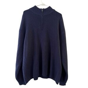 Vintage Men’s The North Face Chunky Knit 1/4 Zip Wool Sweater Size XL Blue Y2K