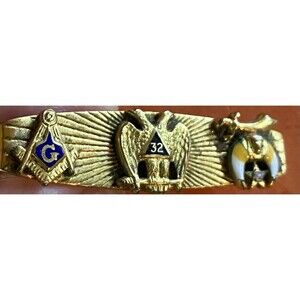 Vintage Men’s Tie Clip Masonic 32 Degree Gold Tone 2” Masons