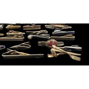 Assorted collection of classic men’s accessories, including vintage tie bars, clips, and money clips. Features several collectible brands and gold-filled pieces. Perfect for collectors, resellers, or vintage fashion enthusiasts.