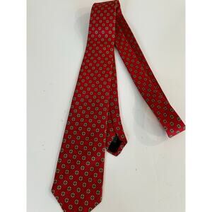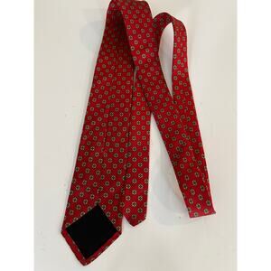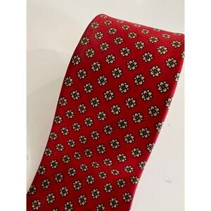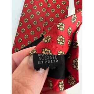 Vintage Men's Tie Red with Gold Geometric Flower Print JL