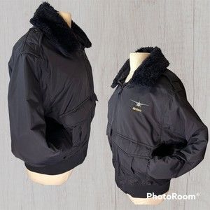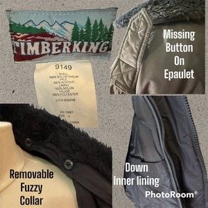 Vintage Men’s Timberking Large Navy Flight Jacket w/Removable Fuzzy Collar & Pad