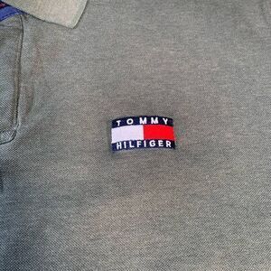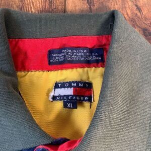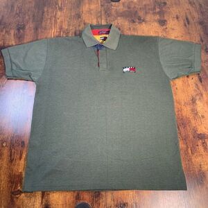 Vintage Mens Tommy Hilfiger Short Sleeve Patch Polo Shirt Flag Green Sz XL