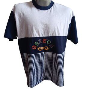 Vintage Men's T-shirt XXL 1990's Embroidered Colorblock Greece Buttery Thin 2XL