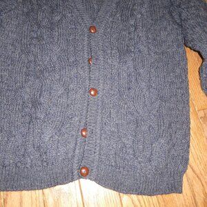Vintage Men's / Unisex 100% Wool Thick Heavy Cable Knit Classic Cardigan Sweater
