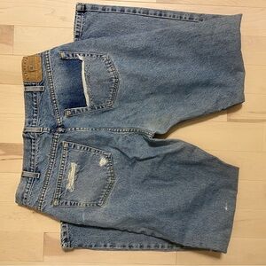 Men’s jeans upcycled and distressed for women. Custom jeans! Vintage and rare.