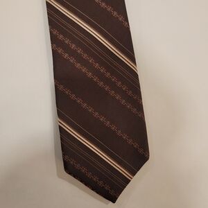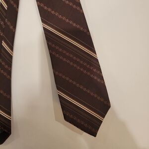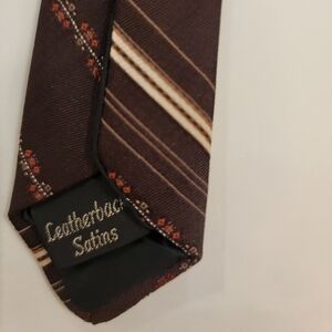 Mens Vintage Tie, Dark Brown with diagonal stripe and small red floral like design. Retro Colors!