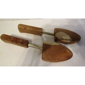 Description: Vintage Mens Wooden Shoe Trees Forms Bostonian 2 Pair Stretchers Horn