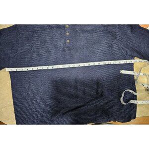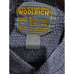 Vintage Men's Woolrich Henley Knit Sweater Size Large Made In USA. 97% Cotton, 2% Nylon and 1 % Lycra. Laid flat measures approximately 24.5" armpit to armpit and 28" long from top of shoulder to bottom hem. In excellent condition, no holes or stains. Smoke free home.