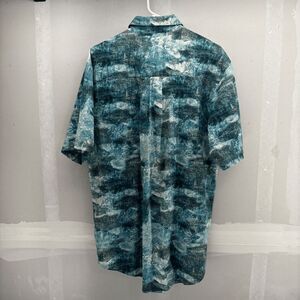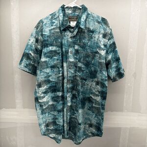 Vintage Mens Wrangler CamoDog Fish Print Short Sleeve Button Down Shirt Size L