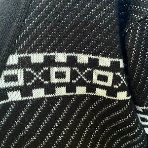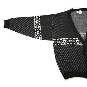 Vintage Mens XL Wool Blend Black White Cardigan Sweater Geometric Design Size XL