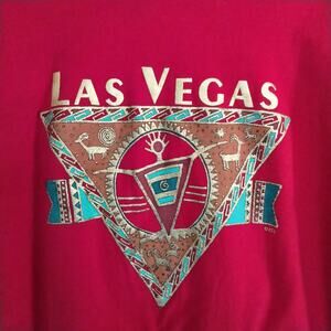 Vintage men's size XXL Las Vegas tee in textured red and gold western screen print. Fruit of the Loom Heavy Cotton. Made in the USA. Very good condition, minimal wear if any. Armpit to armpit: 24in, Shoulder to hem: 35in.