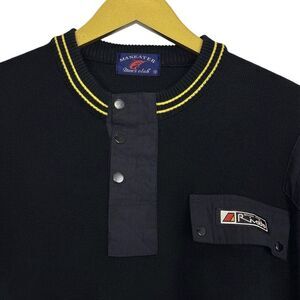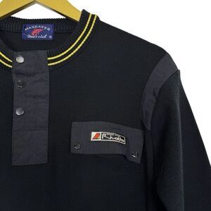 Vintage Mens Yachting Sweater 1/4 Buttons Jumper Size 3 Fit Medium Black Patches