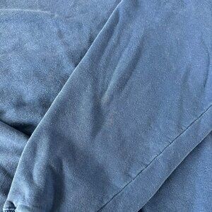 There are discoloration marks all over, distressing on sleeves, and puckering on embroidery see images for reference.
