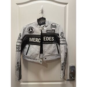 Vintage Mercedes Vegan Leather Crop Jacket F1, Motor sport Racing Size XS/S