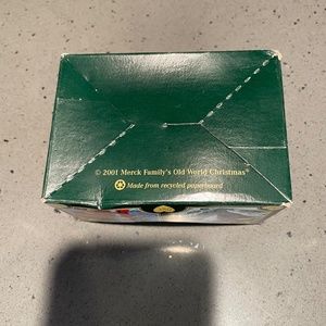 New in box Vintage 2001 Merck Family's Old World Christmas blown glass sand dollar ornament. This beautiful glass ornament was carefully mouth blown into a finely crafted mold. Then a hot solution of liquid silver was poured inside. Finally, the ornament was delicately hand painted with brightly colored lacquers for you to enjoy.